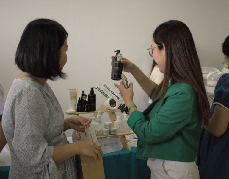 Không chỉ dừng lại ở việc chia sẻ kiến thức, Herbario còn tạo cơ hội để các mẹ trực tiếp trải nghiệm các dòng sản phẩm chăm sóc da và tóc có nguồn gốc thiên nhiên. Với định hướng mỹ phẩm thuần chay, Herbario chú trọng vào các công thức dịu nhẹ, hạn chế các thành phần dễ gây kích ứng, phù hợp với những làn da đang trong giai đoạn nhạy cảm.