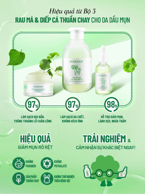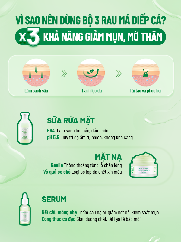 BỘ 3 CHĂM SÓC DA MỤN RAU MÁ DIẾP CÁ HERBARIO