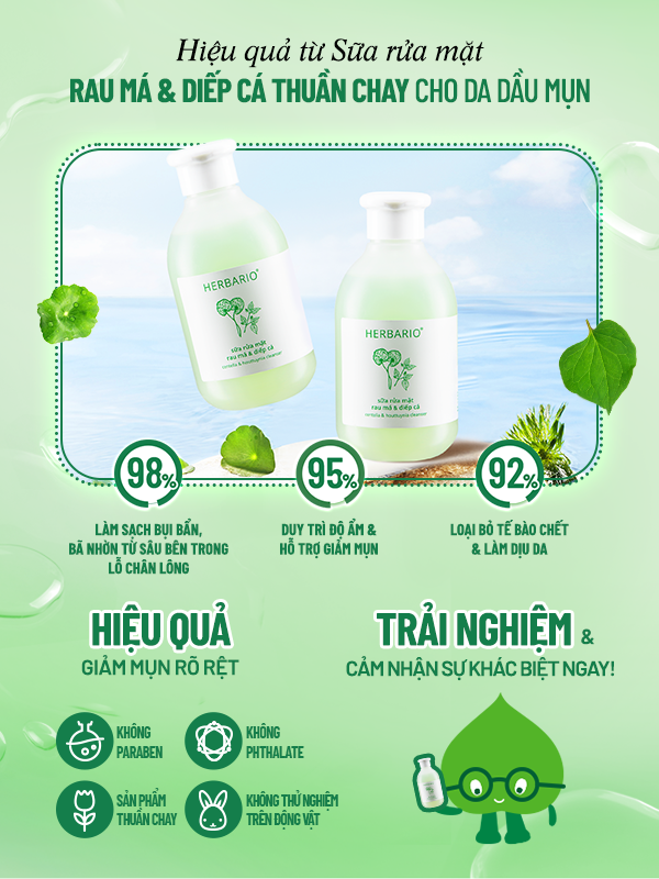 [SET QUÀ TẶNG 20/10] Combo rau má diếp cá Herbario thuần chay: Nước tẩy trang 300ml + Sữa rửa măt 200ml